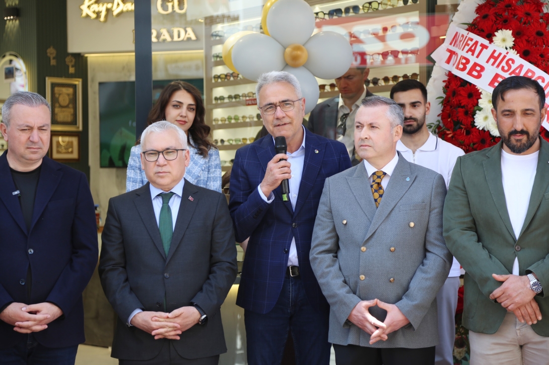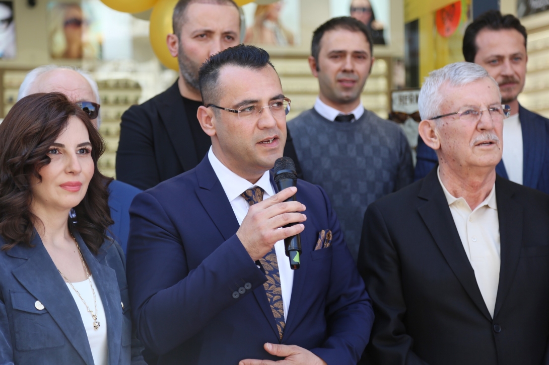 Açılış kurdelesinin kesilmesinin ardından protokol üyeleri ve davetliler, Serkan Optik mağazasını gezerek Serkan Karaçanak’tan bilgi aldılar.