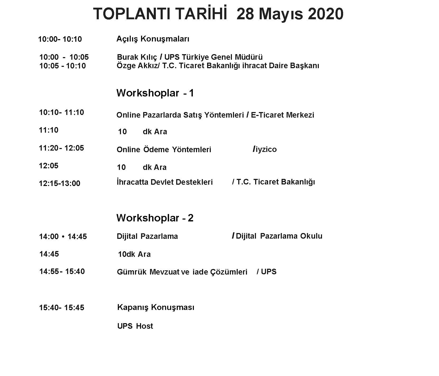 Bu çerçevede, 28 Mayıs 2020 Perşembe günü saat 10:00'da internet ortamında gerçekleştirilecek olan "Online Export Akademi Programı" katılım sağlamanızdan memnuniyet duyulacaktır.”